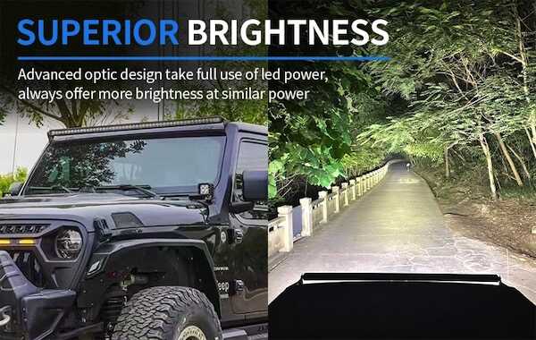 Largeur d'éclairage de 55,76 cm/ 20 pouces avec une puissance de flux lumineux de 9520 Lumen.