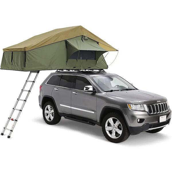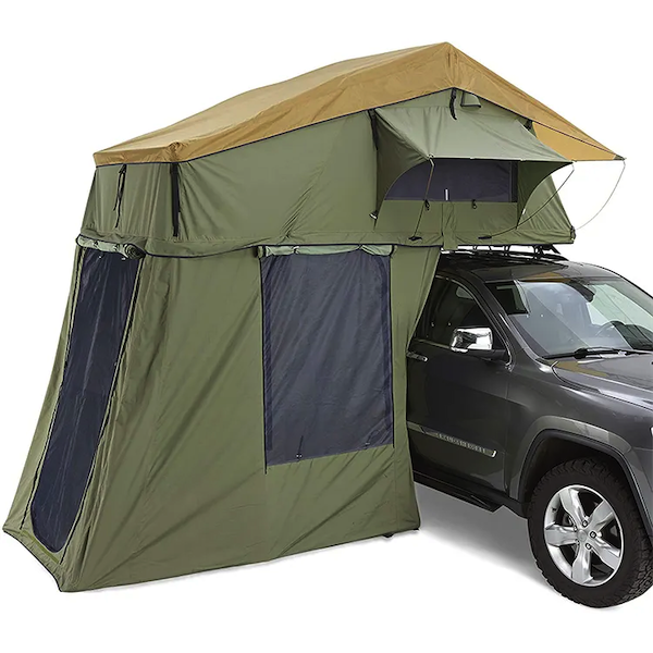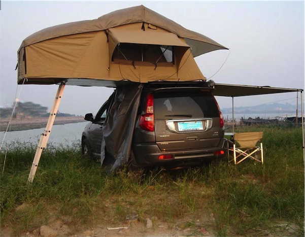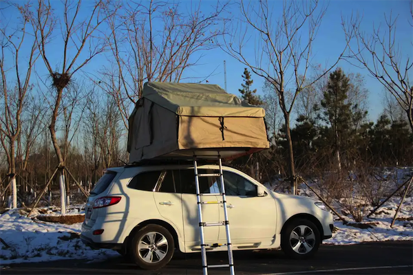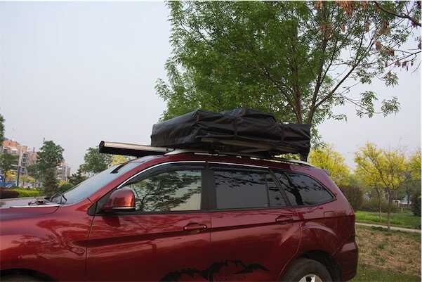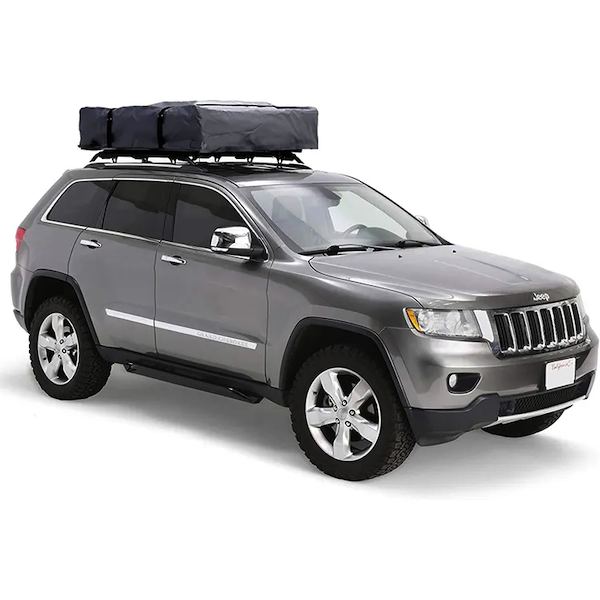 Tente de toit livrée avec des pièces universelles qui permettent un montage facile sur la plupart des barres de toit fixes ou amovibles.