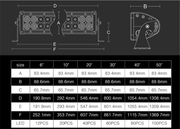 Barre lumineuse à LED type combo haut de gamme.